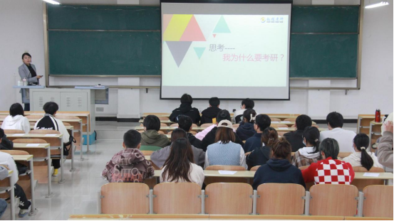 讲座开始,姚老师首先提出了“先明确学习目标,再努力学习”的备考要求,并对同学们发出了“考研的价值是什么?”的疑问。接着,姚老师分别从三个方面为学生解答:一是想在某个领域实现自我价值;二为谋求更好的发展;三是向亲朋证明自己。姚老师通过柱形图为同学们分析了历年全国硕士研究生报名人数,对2022国家线、研究生分类、考研内容、各专业考研方向及择校均作了阐述,鼓励大家确定目标,努力学习,更加认清当前的考研形势:竞争将越来越激烈。同时,姚老师对“先考研还是先考公”问题作出了回答,提供了考研复习整体规划,现场解答了同学们的疑问。最后姚老师送与同学们一句话“既然选择了远方,便只顾风雨兼程!”