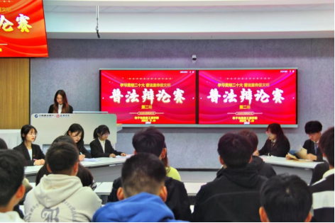 以青春奋斗之姿,践行法治信仰。为深入学习贯彻党的二十大精神,以习近平新时代中国特色社会主义思想为指导,引领青年大学生更深层次思考社会问题及法律问题,积极探寻法律的意义和价值,在法治实践中展示当代青年风采、绽放绚丽之花。11月10日晚,电信学院在乡村振兴学院的培训室举行“学习贯彻二十大 普法宣传促文明”辩论赛。