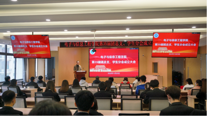 为切实提高电信学院学生干部工作实效,确保各项工作机制高效运转,凝聚新一届团学组织学生干部的责任与担当,11月23日,欧美日韩国产在线在江北校区乡村振兴学院报告厅召开了第35届团总支、学生会分会成立大会,电信学院党总支书记于咏梅、学生工作办公室主任石纭昊、党总支组织委员成英丽和学生第二党支部书记李章雨,安康学院兄弟院系学生分会主席团代表、电信学院团总支、学生分会和社团服务中心成员参加会议。此次会议由电信学院团总支书记张宇航主持。