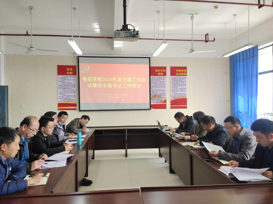 为深入贯彻落实党的二十大精神,做好新时代党建工作,推动重点工作落实落地,促进党建工作出亮点、出特色、出成效,2023年3月8日,电信学院党总支在江北校区逸夫科技楼B702会议室召开2023年度党建工作会议暨党支部书记工作例会,对2023年学院党建各项重点工作进行安排部署,学院班子成员、党支部书记,支部委员参加会议。会议由党总支书记于咏梅主持。