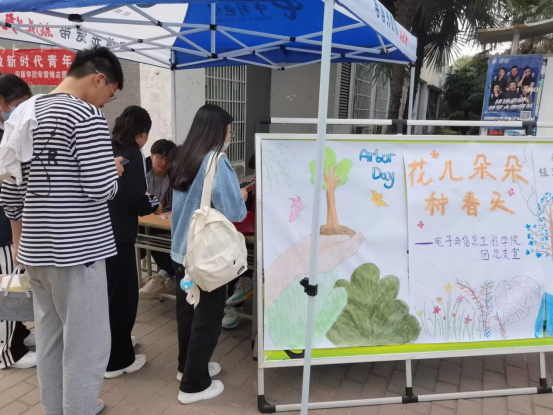 活动当天,电信学院团总支成员提前布置好场地,分装好花籽为此次活动做好准备。来自不同学院不同专业的同学们参与热情高涨,在发放点前有序排队领取花籽,并通过扫二维码进入养花群,分享养花经验,交流养花心得。在现场的电信学院团总支成员不仅给参与活动的同学介绍了百日菊的来历、花语、生长习性,也为了让大家能够顺利种出成花,耐心讲解了种植百日菊花籽的注意事项。参与此次活动的同学纷纷表示,在植树节来临之际电信学院组织的送花籽活动覆盖面广,能让大多数学生参与其中,真正做到在校园内营造出植树护绿、美化环境的良好氛围,特别是宿舍种花能让够让大家足不出户便可拥有美丽的春天。
