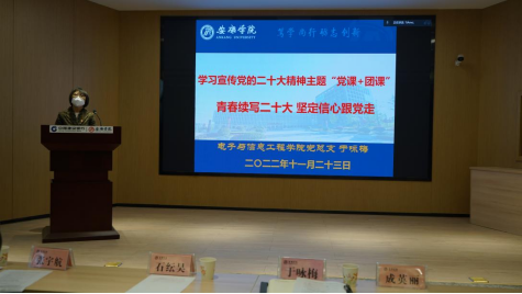 (一)强化思想政治引领,画好团结奋斗“同心圆”。电信学院团总支始终聚焦团员青年成长特点,围绕学院“五色”育人模式,不断延展课堂“半径”,丰富育人主体和渠道。组织各团支部深入开展“青年大学习”主题教育活动,全院年均青年大学习率达94.61%;以“线上”“线下”相结合的方式扎实开展各类主题团课、主题团日活动,全年在“抗日战争胜利76周年纪念日”、“烈士纪念日”、“国家公祭日”、“宪法日”等特殊的时间节点开展主题团日活动15次,并在全院范围内开展“喜迎二十大、永远跟党走、奋进新征程”主题教育团干部上团课活动;按照校团委关于“青年马克思主义者培养工程”工作的部署和要求,致力于培养一批具有忠诚政治品格、浓厚家国情怀、扎实理论功底、突出能力素质,忠恕任事、人品服众的青年政治骨干;工作中充分学生专业特长,依托微视频载体,全面提升对于团员青年思想政治教育的覆盖面、供给量。组织2022级新生学唱团歌、校歌,组织学生拍摄包含青年风貌、环境保护、党史国史等不同题材微视频28部,其中为献礼建团100周年,历时25天制作的短视频《青春的模样》,获得学院领导高度认可,并发布在教育厅网站——厅网视频板块。