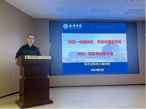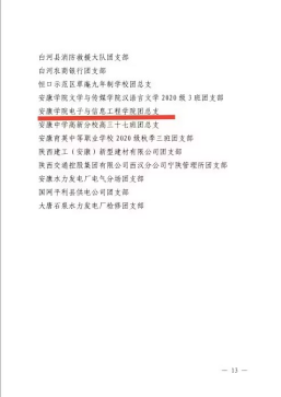 (三)加强基层组织建设,增强团学工作“着力点”。电信学院团总支从实际出发,建立、健全各基层团支部,规范团组织的工作。在团员团籍注册、团费收缴、团员纳新、团组织推优、团支书推选产生方式和团支部考核办法等各项工作中做到有规可循、有档可查、有据可依,按时完成各项基础团务工作。组织设置规范,工作制度健全。制定了《安康学院欧美日韩国产在线团总支工作章程》、《电信学院青年大学习主题团课学习管理办法(试行)》、《电信学院“第二课堂成绩单”项目积分管理细则(试行)》,参与修改、完善了《欧美日韩国产在线学生干部选拔与任用管理办法》、《欧美日韩国产在线团组织推优制度》等,确保各级团组织及团干部工作有规范,办事有制度、管理有办法;依托“智慧团建”系统,完成团干部数据采集、基础团务管理、考核评价、主题团课学习等工作,系统中完成年度“学学衔接”、“学社衔接”分别为100%和98.9%;团总支充分发挥电信学院微信公众号(安大dxxy)对全院团员青年思想政治工作的促进作用,推出一系列输出正确价值观、传递正能量的融媒体宣传作品,全年共发布220篇推文,访问量达115948次。
