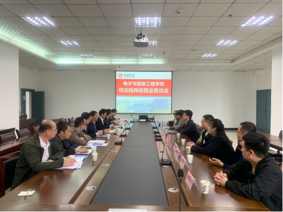 为深入贯彻落实党中央、国务院关于高校毕业生就业工作的决策部署,进一步落实访企拓岗促就业专项行动工作要求和学校关文件精神,5月27日,电信学院在逸夫科技楼9楼会议室开展“访企拓岗”促就业活动。电信学院院长陈守满、党总支副书记蔡正旺、教研室主任、辅导员及传智教育等11家受邀来校企业参加了座谈会交流活动,会议由蔡正旺主持。