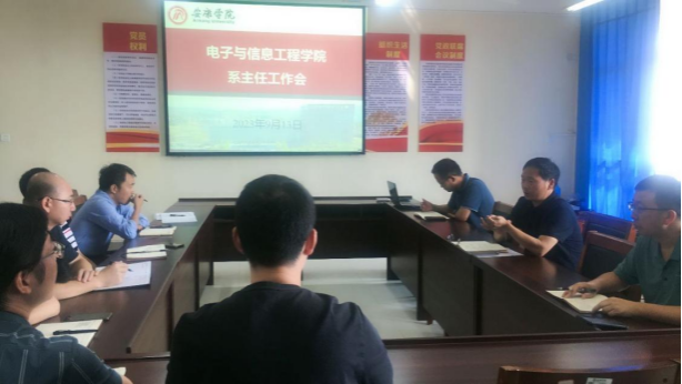 9月13日下午,电信学院在逸夫科技楼B702召开2023年秋季新学期系(教研室)主任工作会议。总结上半年度教学科研工作,研究部署本学期教学、科研、学科建设等各项工作。会议由院长陈守满教授主持,副院长王克刚、宋权华以及各教学系(教研室)、实验中心副主任出席会议。