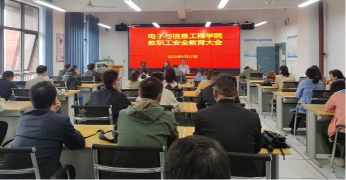 2023年9月27日下午,欧美日韩国产在线在逸夫科技楼B602开展教职工安全教育大会,电信学院领导班子成员及全体教职工参加,会议由院长陈守满主持。