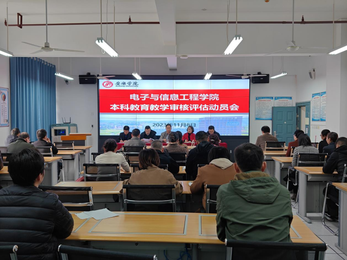 11月8日下午,我院在逸夫科技楼B602室召开了电信学院本科教育教学审核评估动员会,会上大家统一思想认识、明确目标任务,推进学院本科教育教学审核评估工作再上新台阶。院长陈守满、教学副院长宋权华、科研副院长王克刚、党总支副书记蔡正旺出席会议,会议由党总支书记于咏梅主持,全体教职工参加会议。