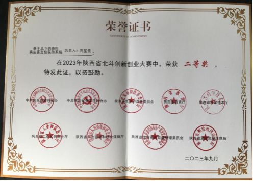 近日,2023年陕西省北斗创新创业大赛比赛结果揭晓,电信学院教师刘星亮的《基于北斗的茶叶病虫害定位联防系统》荣获本次大赛二等奖,学生李冠辰的《基于北斗定位的导盲小车控制系统》荣获本次大赛最具创意奖。