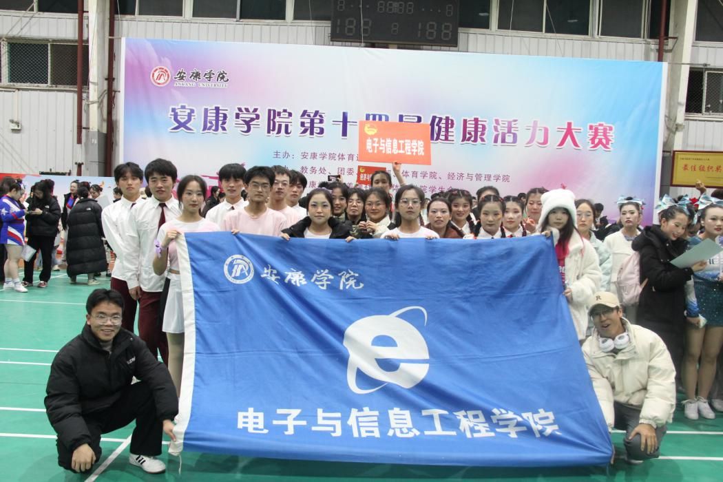 12月8日下午,安康学院第十四届健康活力决赛在江南校区室内体育馆举行,电信学子经过数月的艰苦排练和前期初赛,我院花球啦啦操和健身排舞进入决赛。决赛场上,电信学子以最好的精神面貌,动人的舞步向评委和观众展现了电信学院的热情和大学生的青春气息。