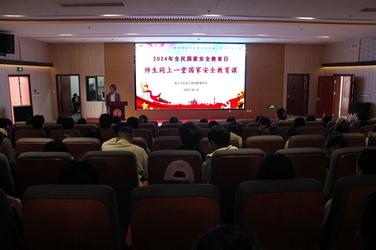 为切实增强师生维护国家安全的意识和能力,加强网络安全防护技能,共同筑牢国家安全的坚固防线。电子与信息工程学院结合学校党委举办的《第九个全民国家安全教育日宣传教育系列活动启动仪式》,于4月15日在江北校区图书馆报告厅举办全民国家安全教育日宣传教育活动,活动由电信学院党总支书记于咏梅主持,电信学院全体教职工、学生代表参与。