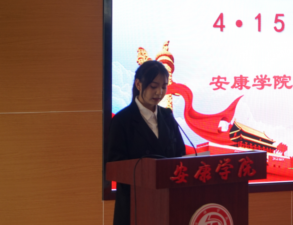 随后电信学院学生代表曹婷发言,她呼吁全体学生要树立国家安全意识,积极践行国家安全责任,提升个人安全素养,共同维护国家安全,为实现中华民族伟大复兴的中国梦贡献青春力量。