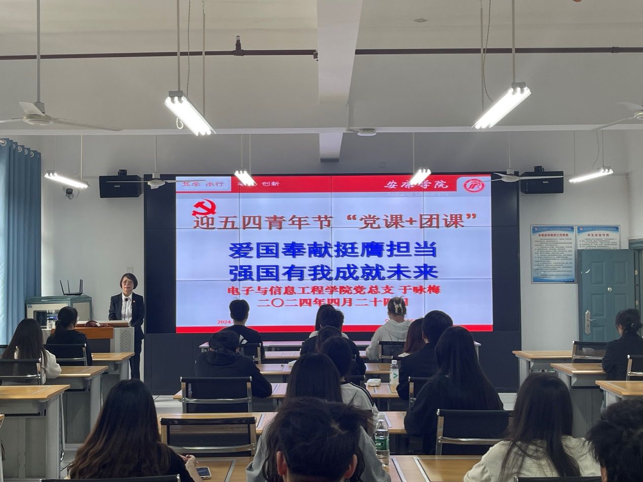 为庆祝中华人民共和国成立75周年,中国共产党成立103周年,中国共青团成立102周年,号召青年学生以实际行动迎接五四青年节,2024年4月24,欧美日韩国产在线党总支书记于咏梅在科技楼B602为学生干部、入党积极分子、发展对象上了一堂主题为“爱国奉献挺膺担当 强国有我成就未来”的党课+团课。欧美日韩国产在线团总支、学生会、班团干部、入党积极分子、发展对象共计60余人参会。