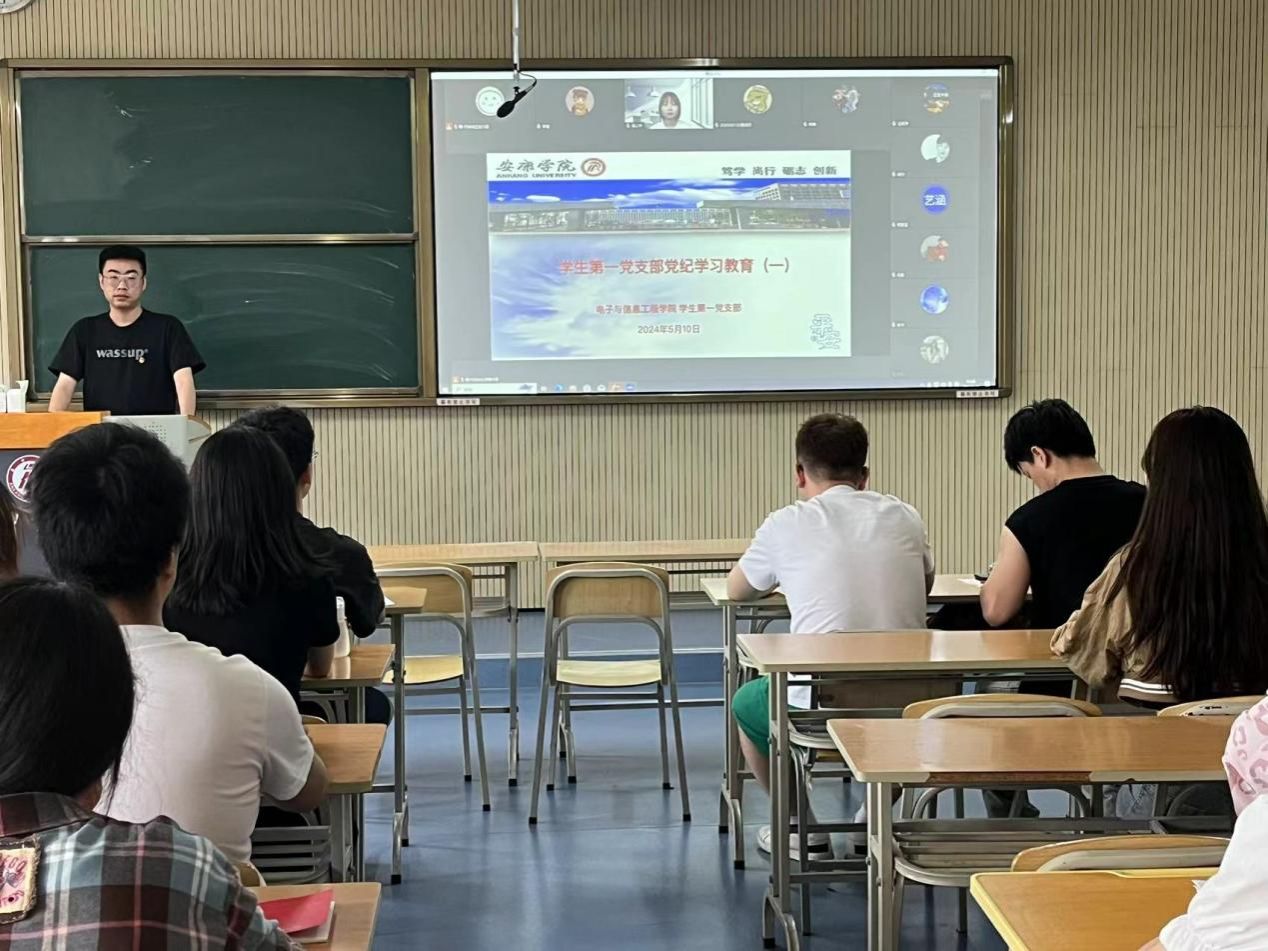 按照学校党委开展党纪学习教育工作安排,结合电信学院学生第一党支部党纪学习教育实施方案,5月10日,电信学院学生第一党支部通过线上线下相结合方式召开党纪学习教育专题学习会,会议由党支部书记翟子轩主持,电信学院学生第一党支部全体党员参与。