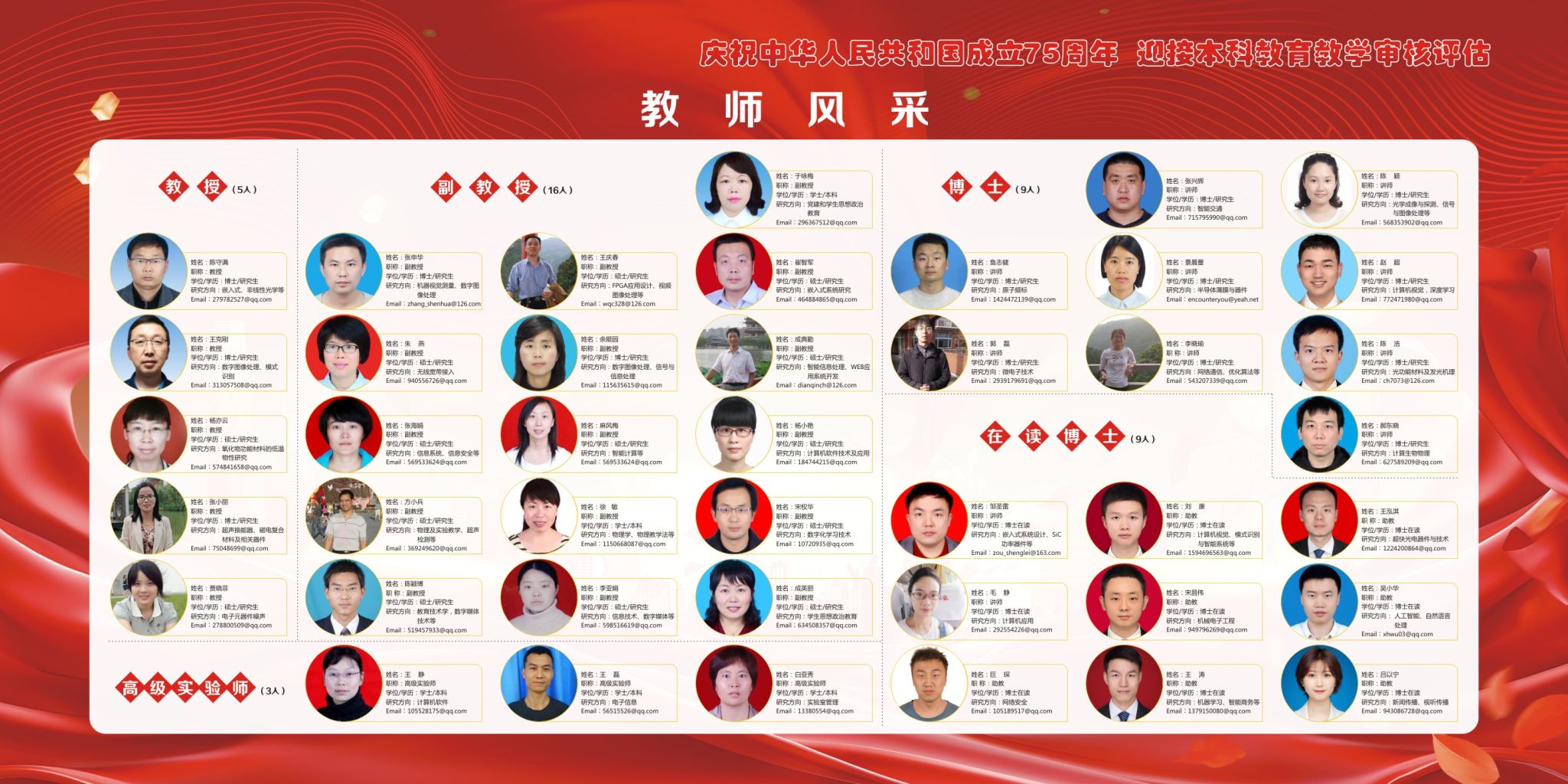 第一块展板向新生及家长简要介绍了学院基本情况,包括现任领导、学院行政服务人员、学系/教研室负责人、实验中心负责人以及专职辅导员老师。