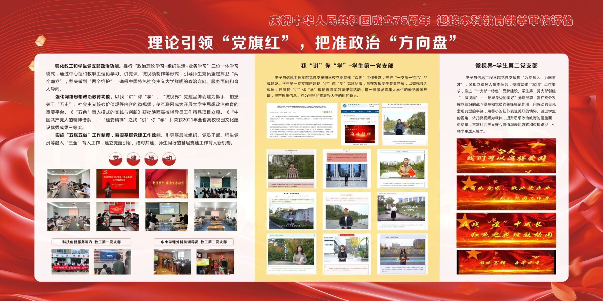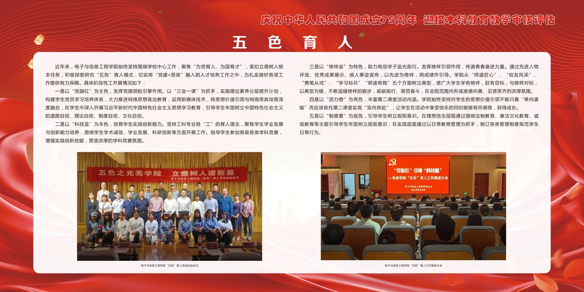 后面的9块展板向学生及家长介绍了近年来欧美日韩国产在线始终坚持围绕学校中心工作,聚焦“为党育人、为国育才”,紧扣立德树人根本任务,积极探索“五色”育人模式,切实将“党建+思政”融入到人才培养工作之中,为扎实做好各项工作提供有力保障的一些成果。