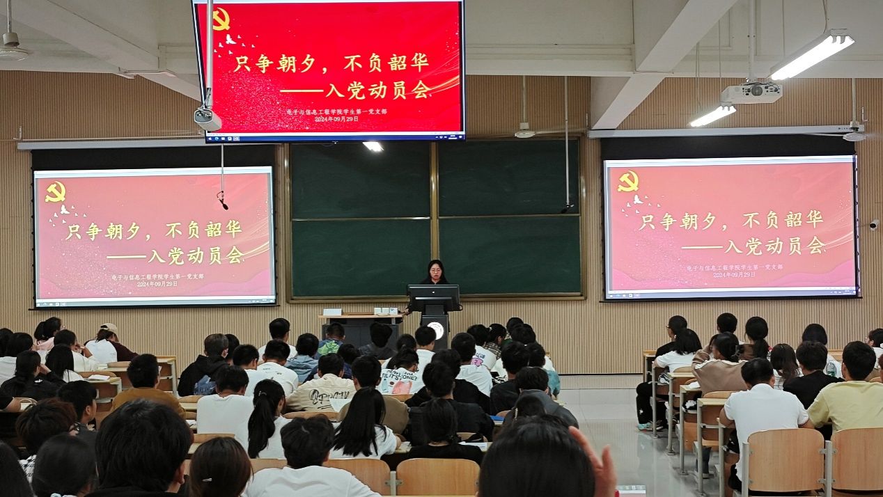 在中华人民共和国75周年华诞之际,为教育引导青年大学生积极向党组织靠拢,坚守“为党育人、为国育才”,抓住2024级新生入学教育关键期,紧密结合党的二十届三中全会精神学习教育,发挥多维度育人效应,帮助青年大学生植下理想信念的种子,让“芯”青年在党旗引领下扬帆起航。9月29日,电信学院学生第一党支部、学生第二党支部走进各新生班级团支部联合开展2024级新生入党启蒙教育。