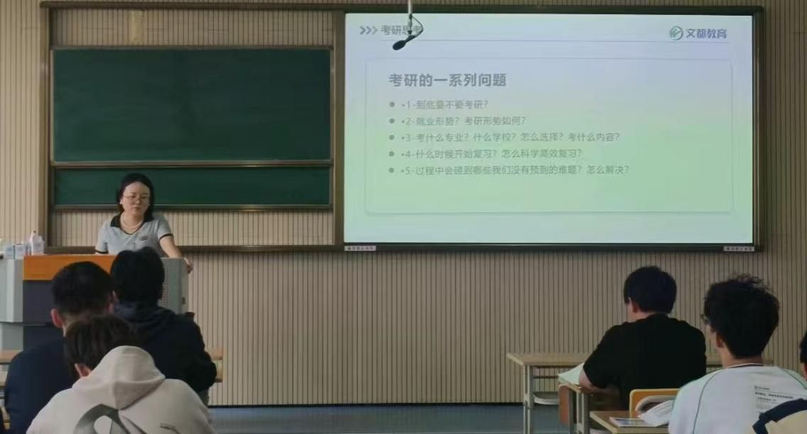 为帮助学生了解考研最新形势、明确考研复习方向,做好考研规划,切实提升学院的备考效率和“上岸率”,10月16日14:30,欧美日韩国产在线在江北校区1320教室举行了题为“2026考研早知道”的考研专题讲座。本次讲座由文都教育的刘丹老师主讲,2022级拟考研学生参加。