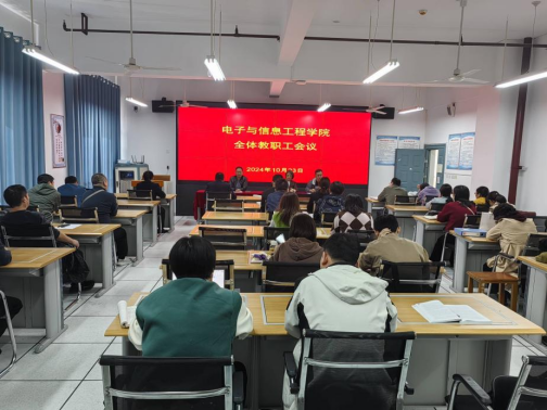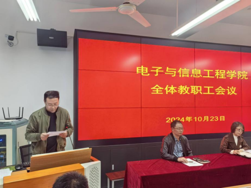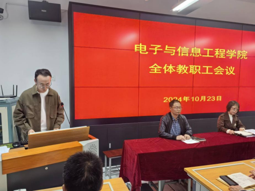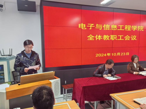 10月23日下午,电信学院在逸夫科技楼B602室召开教职工大会,宣布学校党委关于科级干部任命的决定。学院领导班子与全体教职工参加会议,会议由党总支书记于咏梅主持。