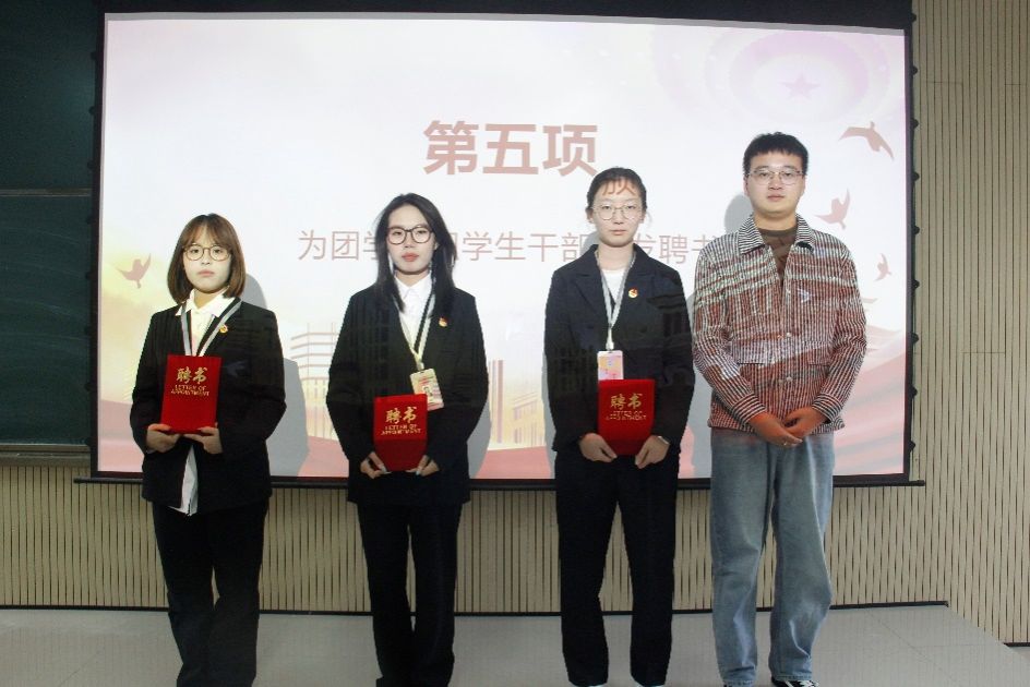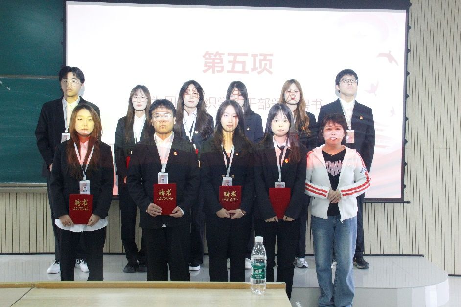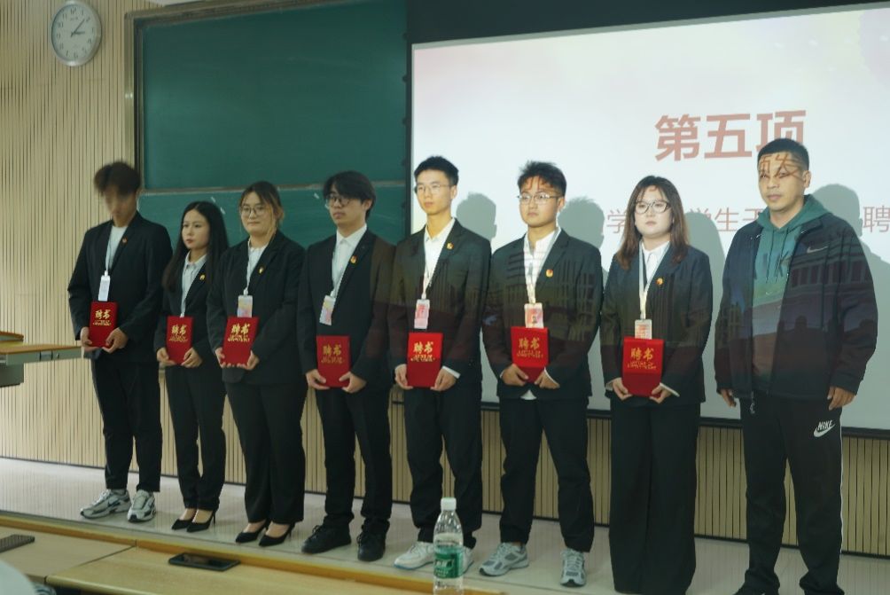 接着由团总支书记张宇航,学工办主任石纭昊,辅导员成英丽,辅导员贾金兵为欧美日韩国产在线学生组织各部门负责人颁发聘书,之后由团学组织干部向各部门干事进行授牌。同时,在学生分会轮值主席赵晓羽的带领下,第37届学生组织全体干部庄严宣誓,坚定了全心全意为同学服务,为欧美日韩国产在线高质量发展挺膺担当的决心。