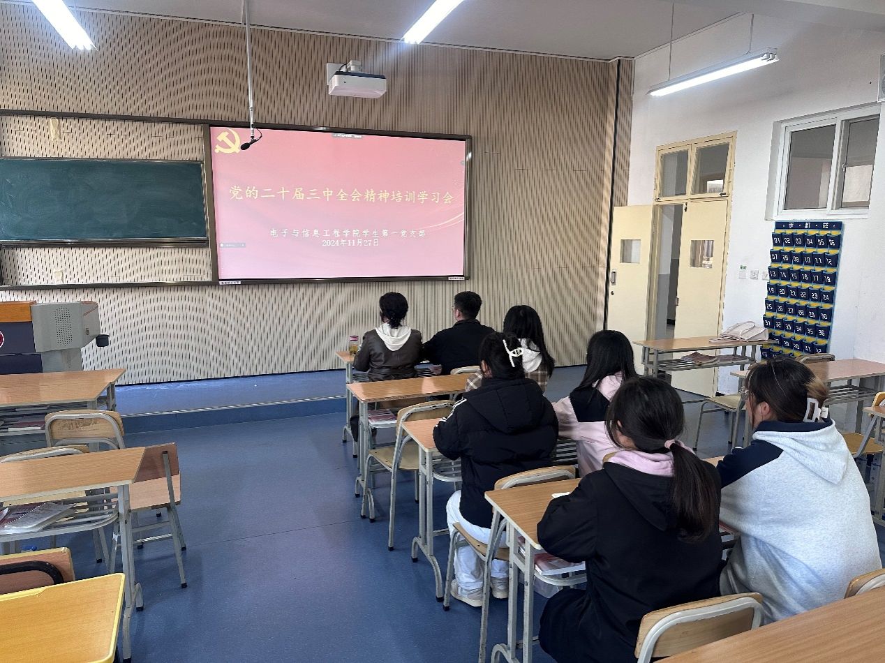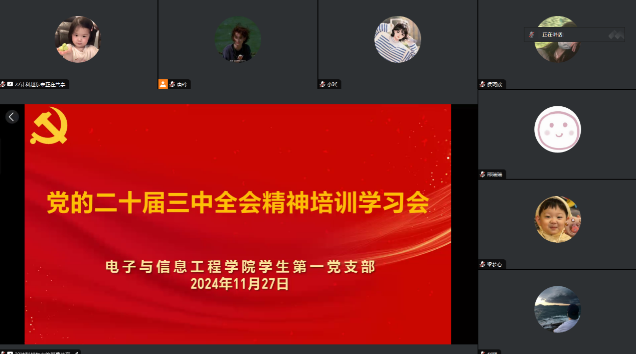 为深入学习贯彻党的二十届三中全会精神,提高全体学生党员的政治理论素养,11月27日下午,电信学院学生第一党支部、学生第二党支部召开党员大会,开展党的二十届三中全会精神专题学习培训,学生第一党支部、学生第二党支部全体党员参加会议。