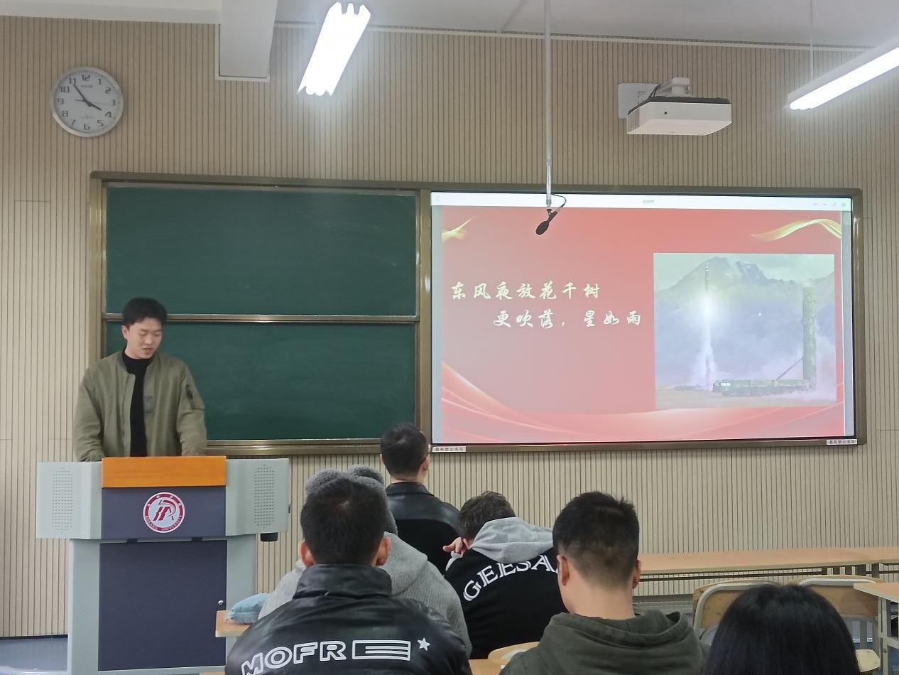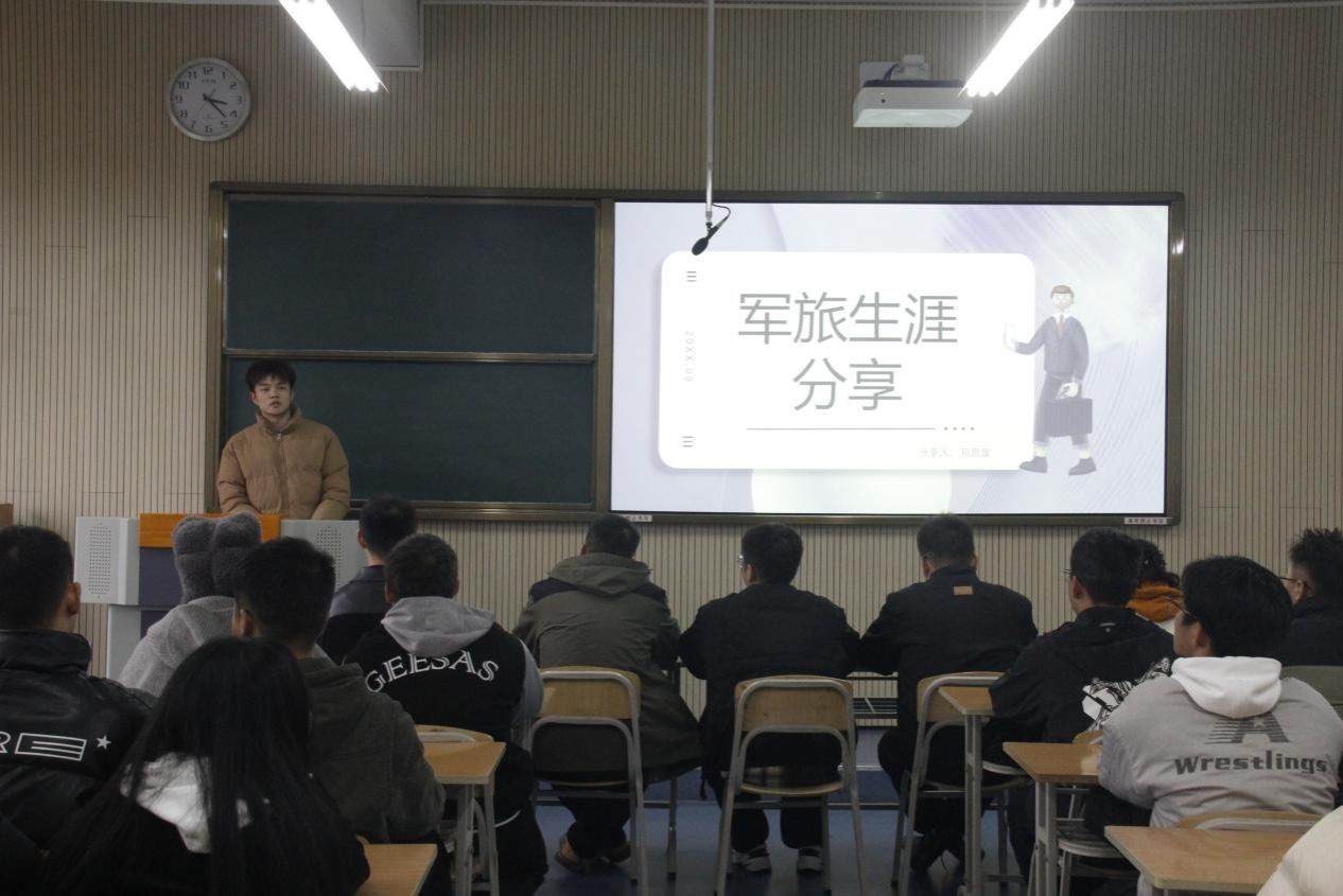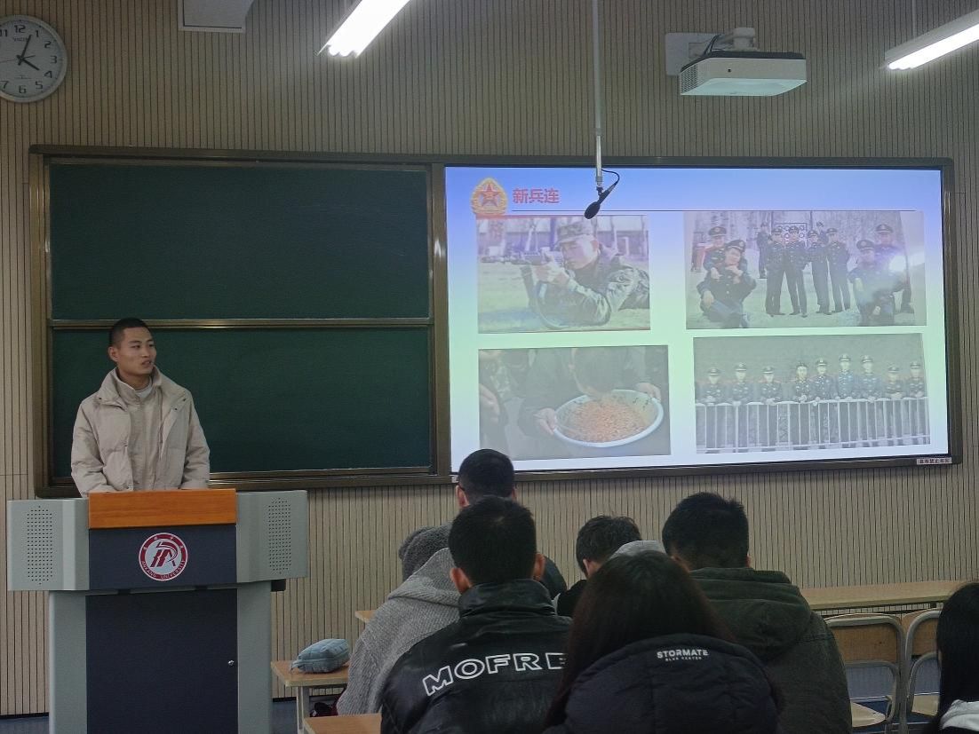 2024计算机科学与技术1班李旋杨,原服役于中国人民解放军武警某部。他从小就将参军梦的种子深埋心中,在2022年如愿以偿踏上了入伍的列车,成为了一名光荣的边疆卫士。李旋杨同学在会上激情讲述了他是如何从一名普普通通的士兵,通过不断突破自我、迎难而上逐渐成长为一名优秀的军人。