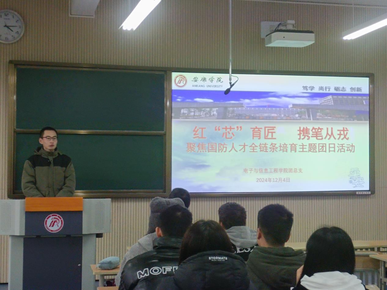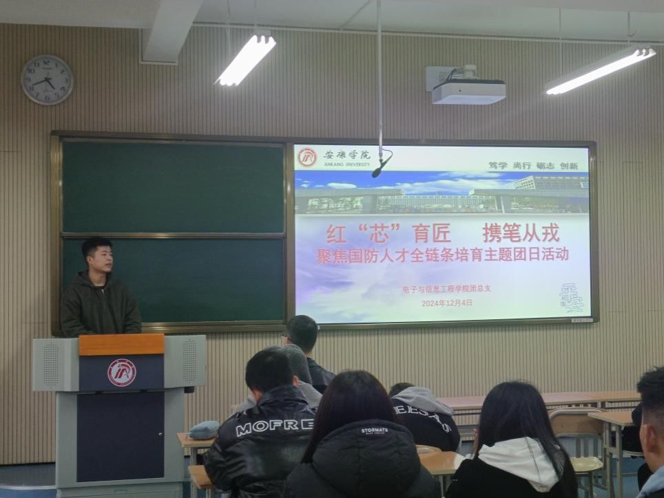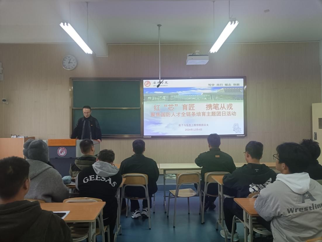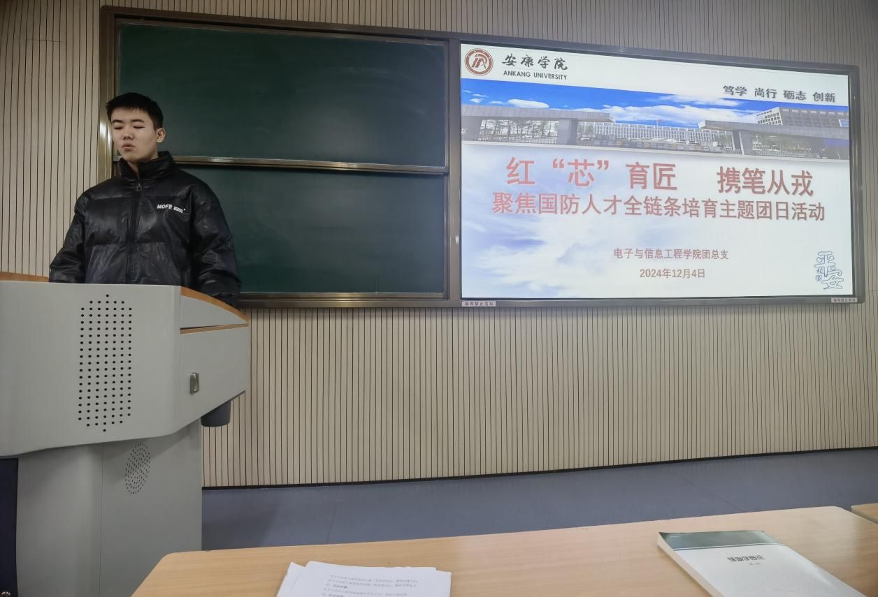 为聚焦退役大学生士兵回校后继续发扬部队‘特别能吃苦、特别能战斗、特别能奉献’的光荣传统和优良作风,引导“芯”青年牢固树立纪律规矩意识,自觉培养高尚道德情操,涵养清正廉洁的作风品行,动员更多符合强军需求的大学生青年投身国防事业,为部队输送更多有志青年。12月4日,欧美日韩国产在线以“红‘芯’育匠 携笔从戎”为主题开展聚焦国防人才全链条培育主题团日活动。学院党总支书记于咏梅、学生工作办公室主任石纭昊、团总支书记张宇航、党总支组织委员成英丽、学生第一党支部书记翟子轩、学生第二党支部书记贾金兵、全院退役大学生士兵及各班级主要干部参加活动。