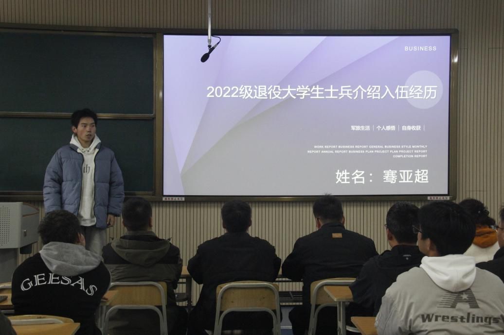 2022级物联网工程1班苗安宁,原服役于中国人民解放军陆军某部。他讲到,两年的军旅生涯,他学会了面对挑战时的勇气,面对压力和困难时的应对能力,以及在困境中保持冷静和决策能力。他认为部队生活为退役大学生士兵提供了一种独特的机会,让他们在军事技能、领导力和品质方面得到全面发展与成长。