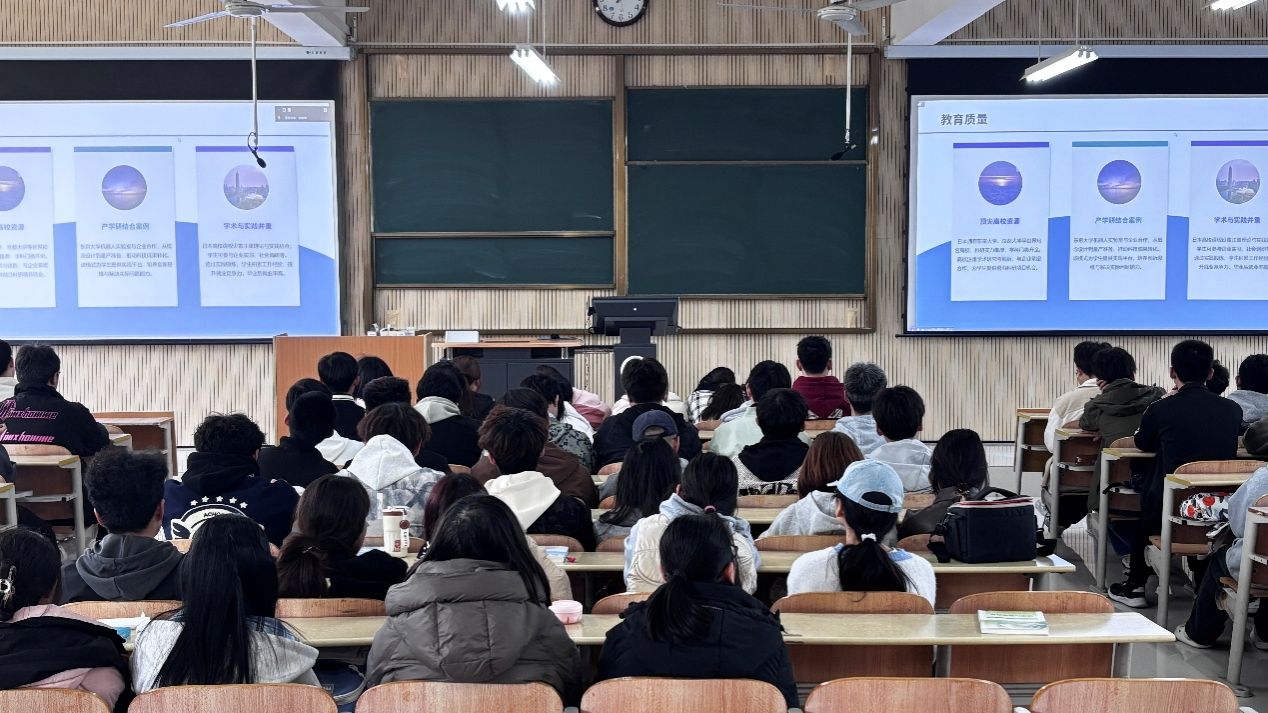 宣讲会上,此次宣讲会宣讲人白雪垠向各位学生介绍了2025年日本留学最新政策解读、申请攻略及热门专业推荐;日本就业形势、就业前景与热门行业分析。