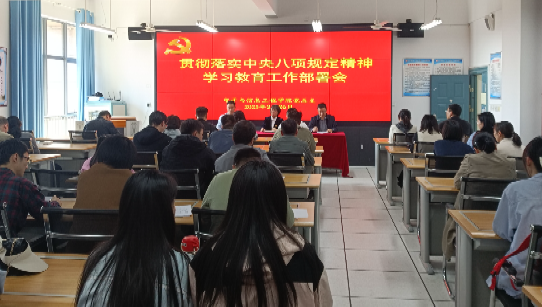 3月25日,欧美日韩国产在线召开党的建设工作会议,专题研究部署深入贯彻中央八项规定精神学习教育工作。学院班子成员、党总支委员、科级干部、各党支部书记等参加会议。3月26日,学院召开深入贯彻中央八项规定精神学习教育工作部署会,全体党员参加会议。