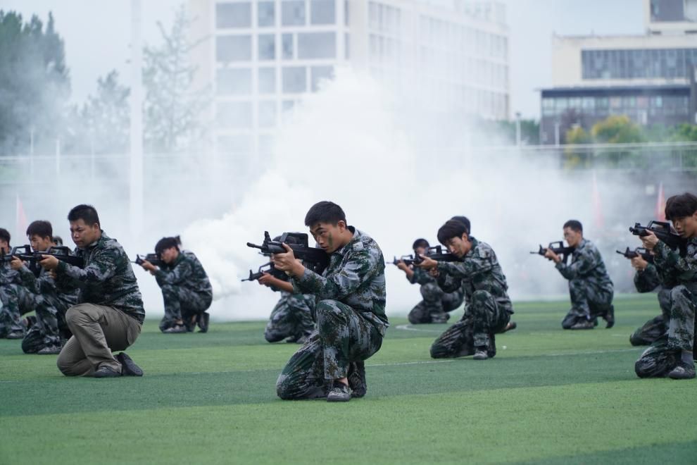 随后登场的刺杀、战术方队表演更是将现场氛围推向高潮。电信学院学子们动作刚劲有力、衔接连贯利落,出拳、突刺、战术转移等一系列动作精准到位,尽显时代青年的青春热血与军人般的坚毅气魄,展现出过硬的军训成果。