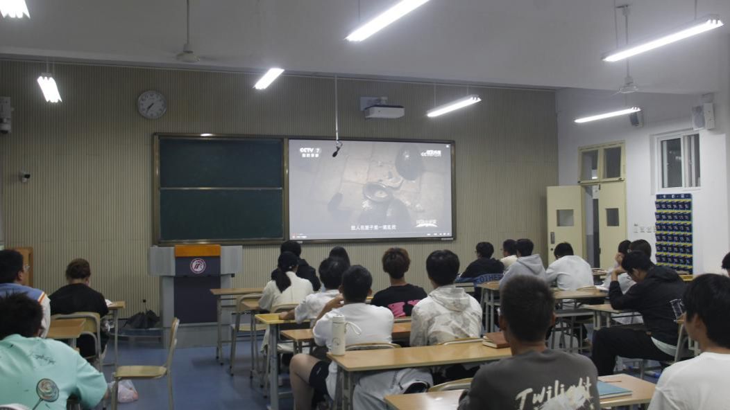 为增强新生国防观念、激发爱国强军使命担当,电信学院于9月20日晚,组织动员全体学生观看CCTV-7国防军事频道播出的《国防公开课》,为新生们呈上了一堂兼具思想深度与视觉震撼力的国防教育“开学第一课”。本次活动创新采用“集中+分散”双模式:2025级学生在教室集中观看,其余同学则在宿舍同步参与,确保全员覆盖、不漏一人。