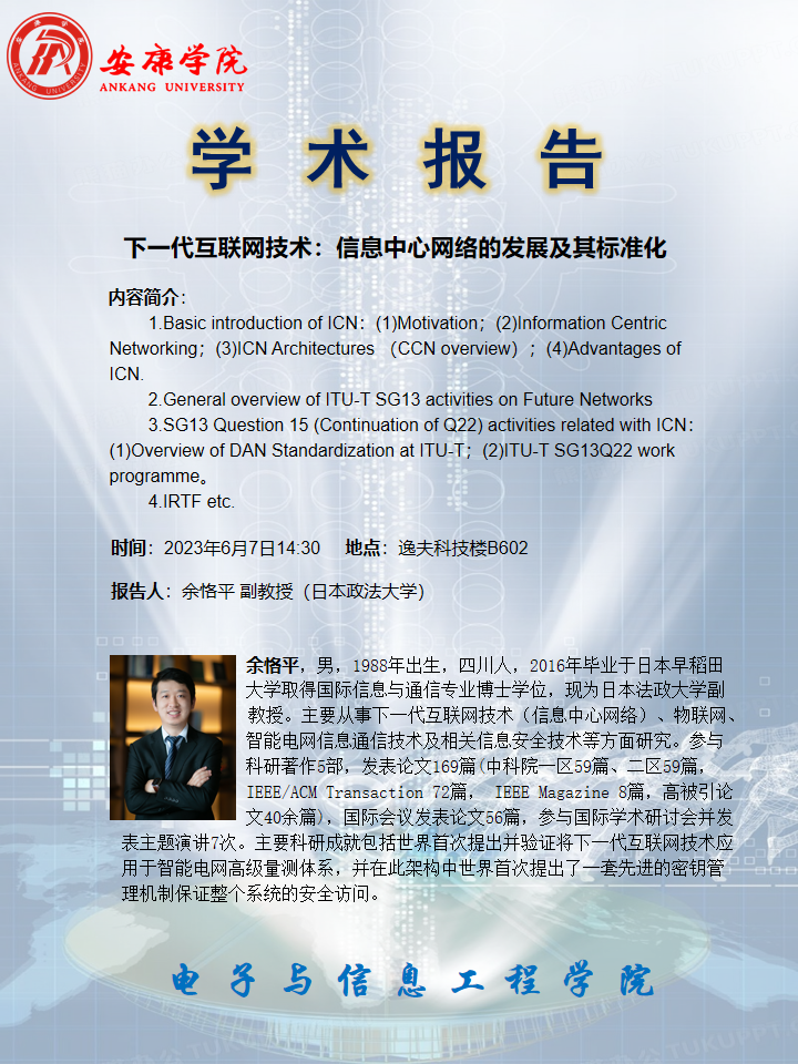 电信学院学术报告:下一代互联网技术——信息中心网络的发展及其标准化