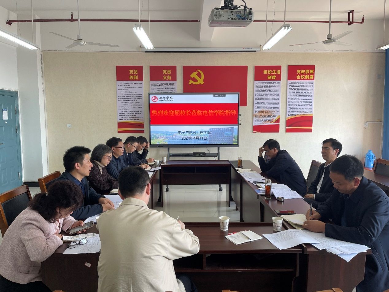 2024年4月11日,党委委员、副校长屈险峰到电信学院学院调研指导毕业生就业工作,党委学工部部长、学生处处长、就业指导中心主任李岩,学生处副处长、副主任郑武斌一同参加调研。电信学院党政领导班子,就业工作办公室主任,毕业班辅导员参加调研活动。
